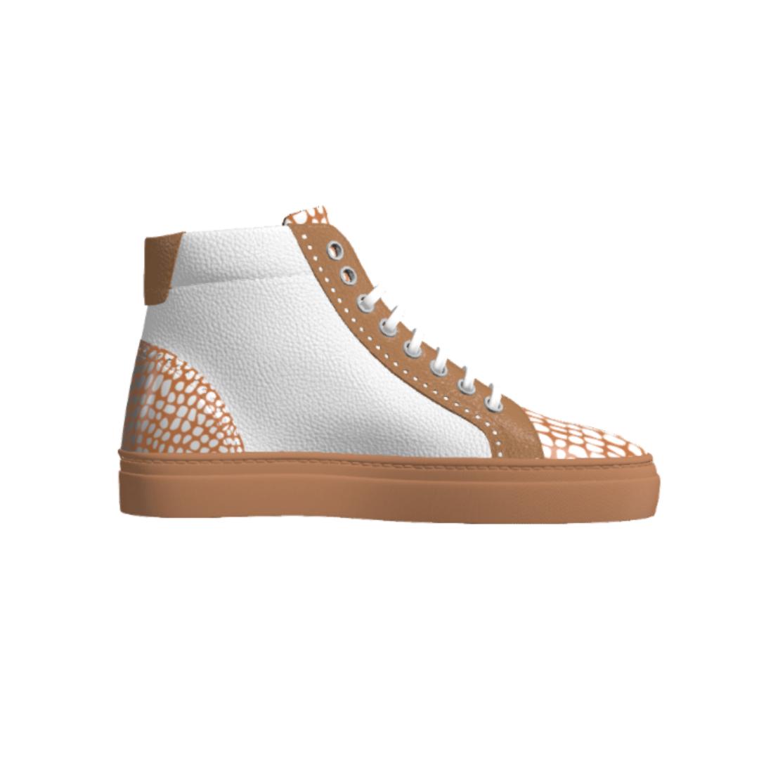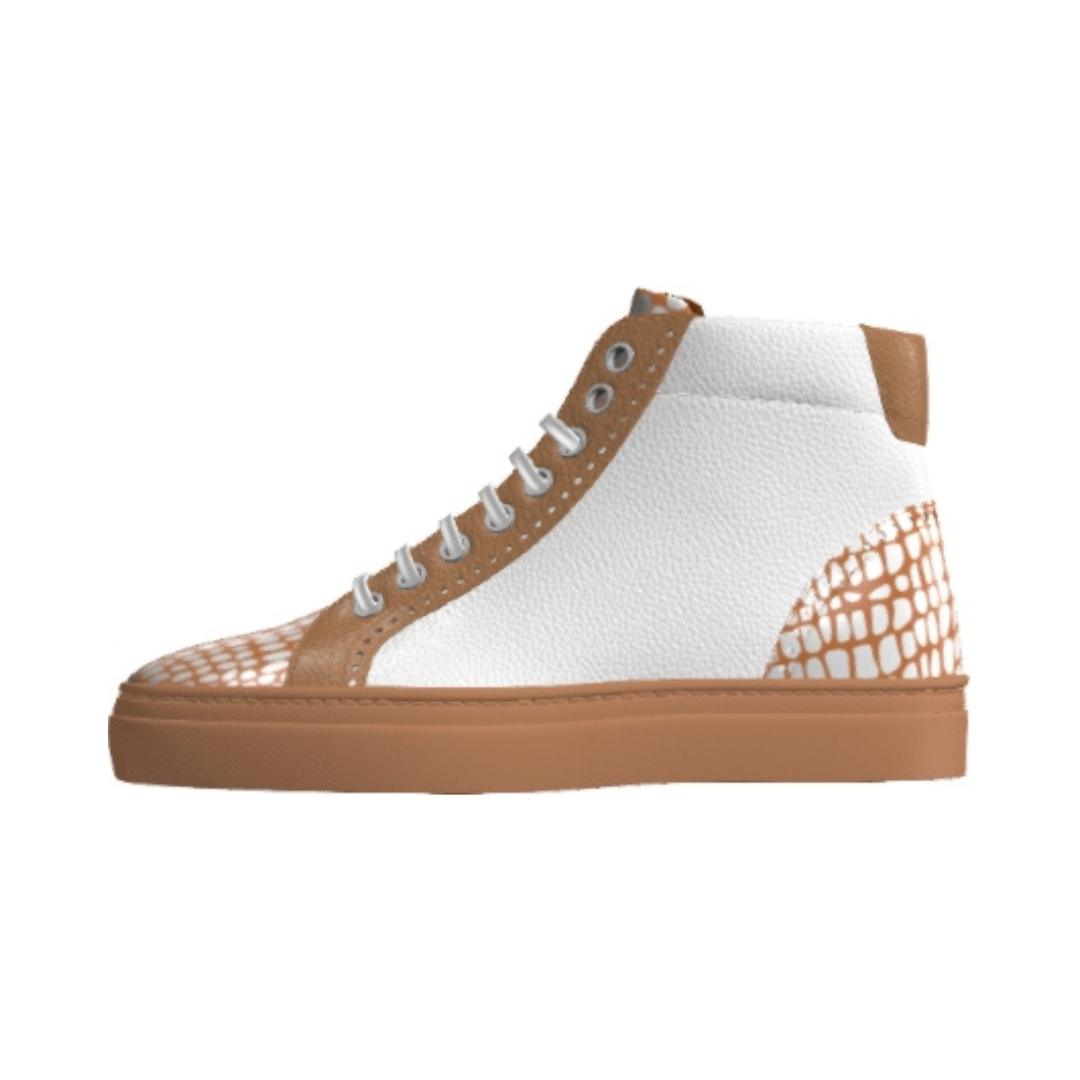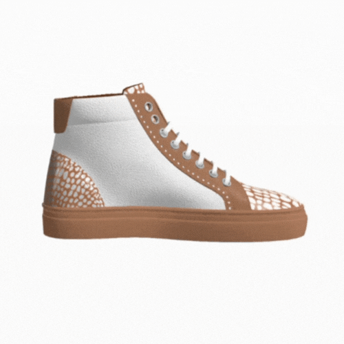 Be the first to review “DS49 White and Tan Printed Snake High Top”