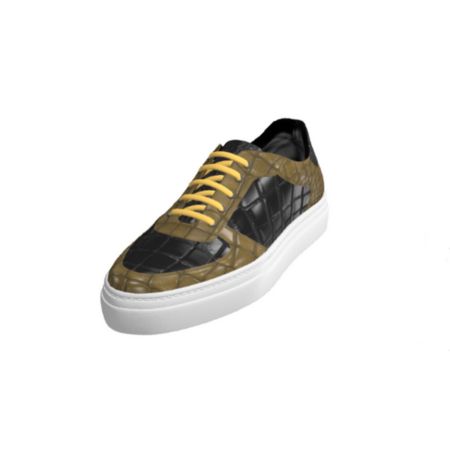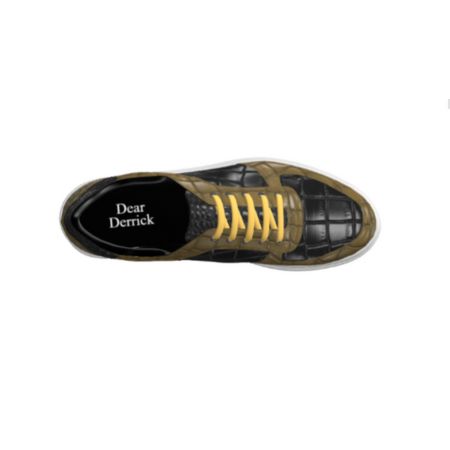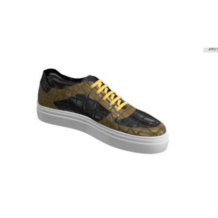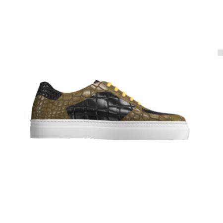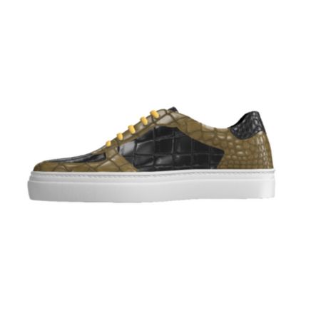 DS76 Olive and Black Croc Leather Low Top Trainer
